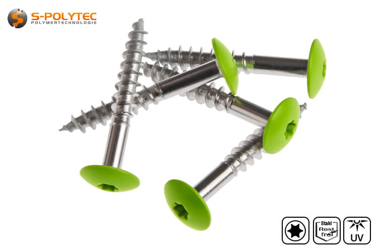 Al onze gevelschroeven hebben een krasvaste kopcoating met een zeer goede UV- en weersbestendigheid. Dit zijn belangrijke eigenschappen omdat gevelbekleding immers in de meeste gevallen aan de buitenmuur wordt bevestigd. Het lichtgroen van de gelakte schroefkoppen, komt exact overeen met de oppervlakken in Lime Green met de fabrikantcode A37.0.8 van de Trespa® Meteon® UNI COLOURS panelen met gesatineerd oppervlak. Dit zorgt voor een visueel onopvallende bevestiging van de panelen.